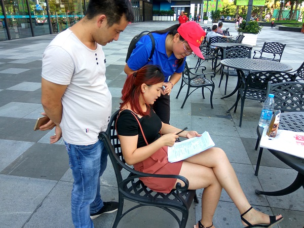 实践队员按照安排,有序地向来往游客介绍来意,向游客发放问卷调查,并耐心回答游客提问关于危险驾驶的相关问题。期间,队员们还向游客宣传学校,并发放学校招生简章。在队员们的宣传下,游客们对公众对危险驾驶的认知有所了解,对304永利集团的认识更加深入,并对实践队的问卷调查活动表示肯定。