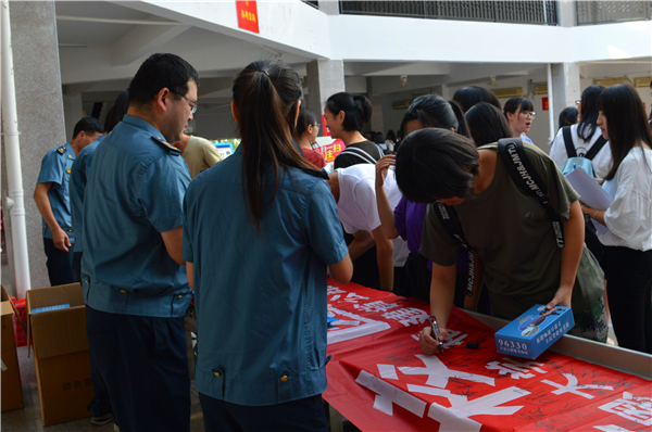 活动期间,路政处车梦霜在与学生事务部主任吴胜潮互赠锦旗,工作人员引导师生进行横幅签名活动,并观看了路政普法宣传展板。