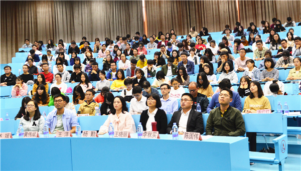 王洋从“历史的新方位”“不忘初心,方得始终”“青年新使命”三个方面诠释了“不忘初心终绽放,牢记使命续华章”的深刻含义,对新时代背景下如何加强高校思政工作进行了理论联系实际的分析。她指出,教师应不忘教育的初心,牢记使命,本着对工作的热爱与责任,以德施教。对于青年,她强调要树立正确的世界观、人生观、价值观。围绕自身学习十九大报告的感悟体会和习近平总书记对青年的谆谆寄语,王洋老师以青年学生感兴趣的方式、接地气的语言,勉励在场学子要不忘初心,努力争做有理想、有本领、有担当的新时代青年,做中华民族伟大复兴的接班人。