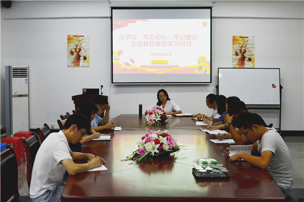 10月9日下午,永利3044集团党总支组织全体教师党员以及教师入党积极分子围绕“践行初心使命”主题,在304永利集团第三校区普照教学楼法律诊所召开“不忘初心、牢记使命”主题教育专题学习研讨会,会议由永利3044集团党总支书记兼副院长杨勤主持。