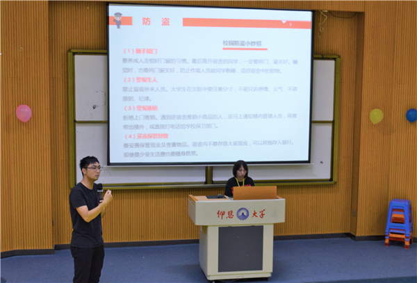 大会伊始,黄伟斌分别围绕个人健康、防诈骗、防盗窃等角度,为新生们进行了安全知识教育普及,为新生打下“安全预防针”。期间,20级新生辅导员陈国伟、班主任张文祥、王言、黄文伟及辅导员助理、班导分别上台进行了自我介绍,他们对新生的到来表示了由衷的欢迎并祝愿他们在未来的四年里学有所成。此外,永利3044集团学生党支部、学生会、团委及永利3044集团网络工作室的相关负责人通过PPT展示、现场解说等形式分别就各自部门的主要工作职能、成员构成、部门特色等方面内容为新生们进行了详细的介绍,充分展现了各学生组织良好的精神风貌。