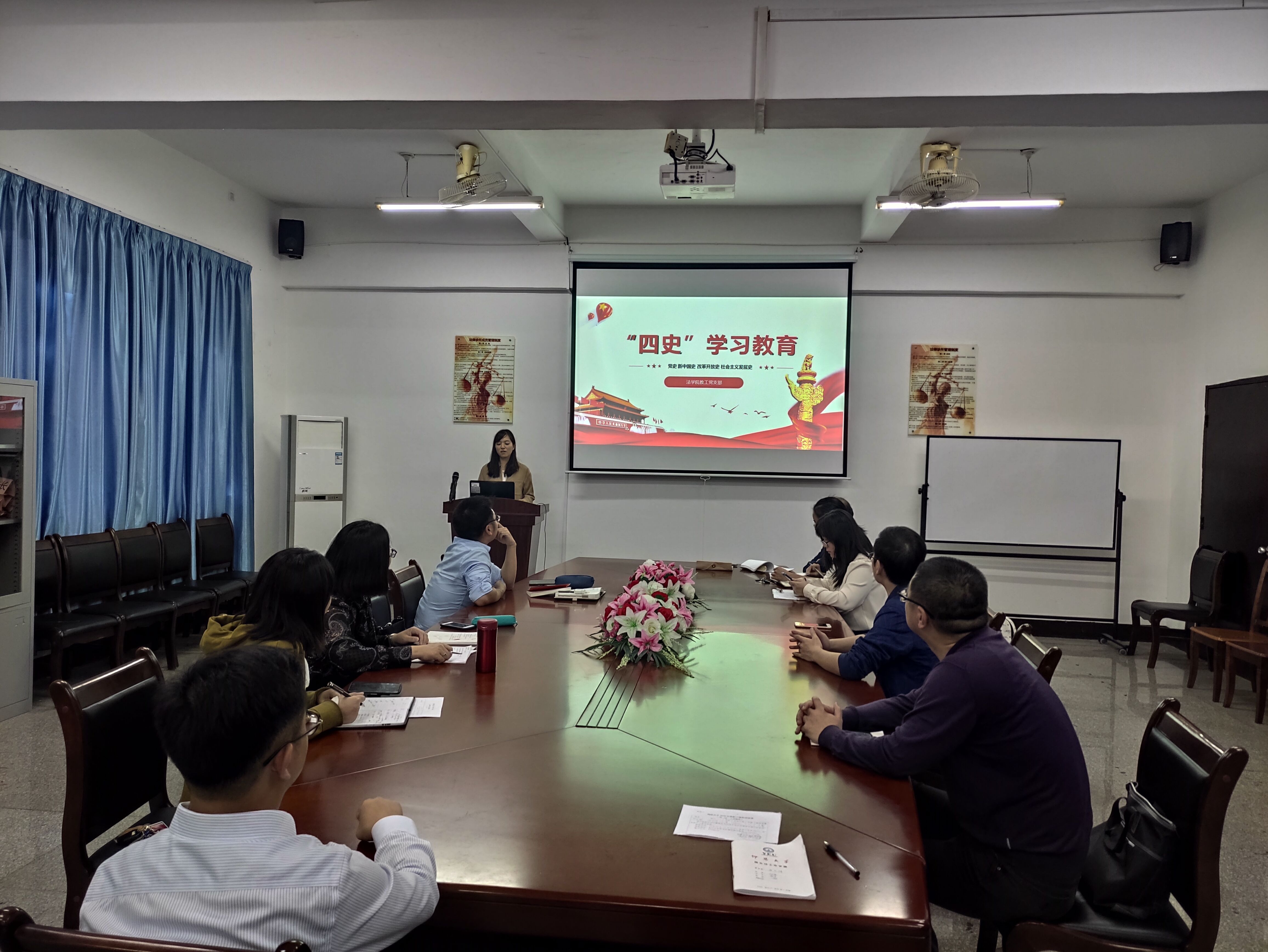 11月18日下午,永利3044集团教工党支部于304永利集团第三校区普照教学楼法律诊所开展“四史”学习教育活动,永利3044集团全体党员教师参加了此次活动,活动由支部书记林媛主持。