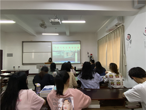 长征是人类历史上的伟大奇迹,红军共经过14个省,翻越18座大山,跨过24条大河,走过荒草地,翻过雪山,行程约二万五千里。陈景仕同志分享的歌曲《红星照我去战斗》表现了上世纪30年代,红军长征北上抗日以后,留在当地的红军后代——潘冬子在和土豪胡汉三斗争中逐渐成长的故事。林曼婷同志在分享的歌曲《十送红军》中指出,今年是党的百年华诞,也是长征胜利85周年,作为大学生党员,更要继续发扬长征精神,在实践中融汇贯彻党史学习,在实际行动中锤炼党员素质、彰显党员风采。