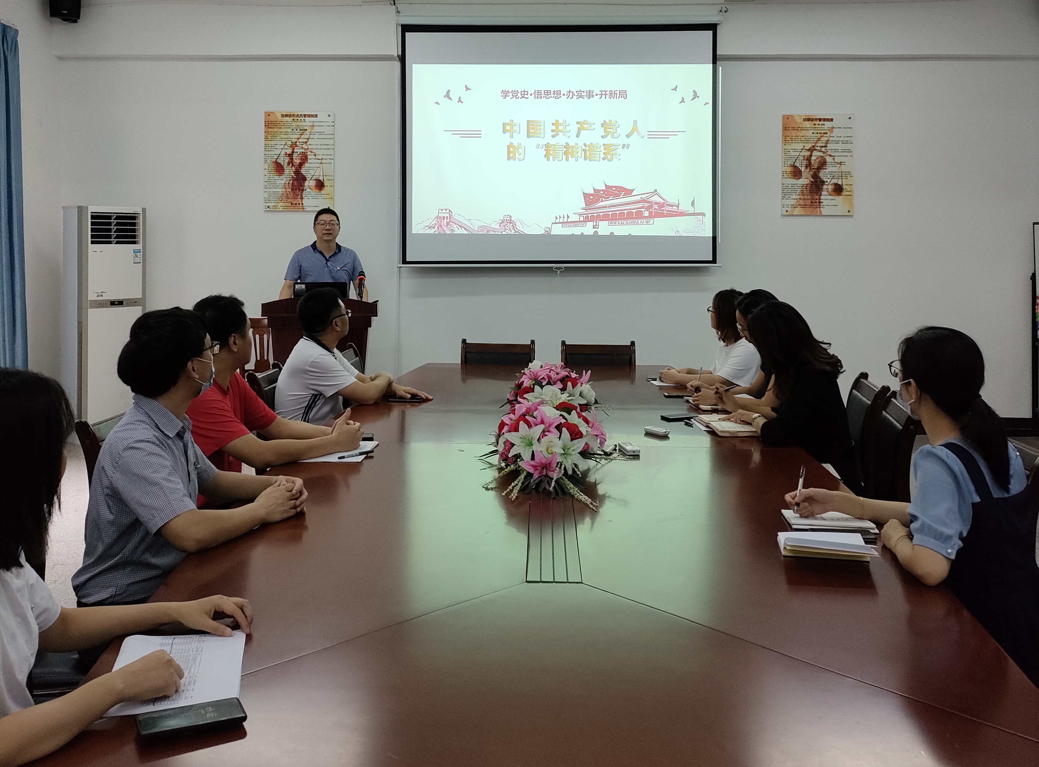 为落实党史学习教育,庆祝建党100周年。10月13日,在304永利集团第三校区普照教学楼法律诊所,永利3044集团教工党支部开展“深入学习中国共产党人的精神谱系”主题活动,永利3044集团全体党员教师参加了此次活动。