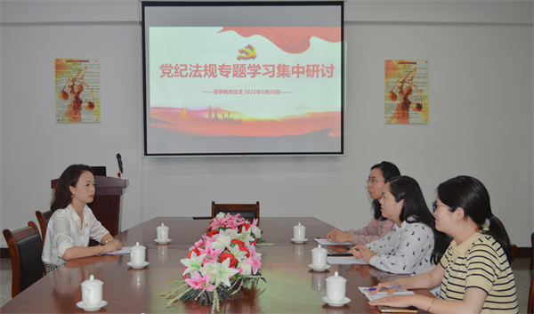 为全面落实从严治党要求,牢固树立党员的党章意识、纪律意识和规矩意识,5月26日下午,永利3044集团党总支于第三教学区法律诊所召开党纪法规专题学习集中研讨会。永利3044集团党总支书记兼副院长杨勤主持会议。