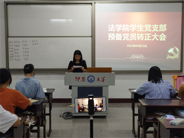 6月21日,永利3044集团学生党支部于普照楼303教室召开预备党员转正会议,大会的主要议题是讨论关于周日萍等21名同志转为正式党员的问题。会议由永利3044集团学生党支部书记吴姗姗主持,支部全体党员参加。  (会议现场图) 会议开始,吴姗姗同志通报了到会党员人数,到会人数符合党章和基层党组织换届选举的相应规定,预备党员转正会议正式开始。随后21位预备党员依次发言,由入党介绍人以及与会党员分别对转正同志一年预备期的表现进行总结评价,并就是否同意转正表明了自己的意见。之后由到场的正式党员进行无记名投票表决,通过预备党员转为正式党员的申请。会议最后一项,在郑薇同志的带领下,21名同志面对党旗郑重宣誓。 会议尾声,支部书记吴姗姗对转正大会进行了简要总结和点评。向21名同志表示祝贺,同时,希望转正的同志们能够践行他们的展望与初心,将初心落到实处,也希望他们能够履行党员的义务,认真学习党章,认真完成支部的任务,为群众树立榜样,学好理论知识,将理论与实际结合,永不懈怠,向着一名合格的共产党员前进,坚持吃苦在前,享受在后的精神,积极回馈社会,服从组织安排,真正做到在思想上入党。(永利3044集团学生党支部/图文)