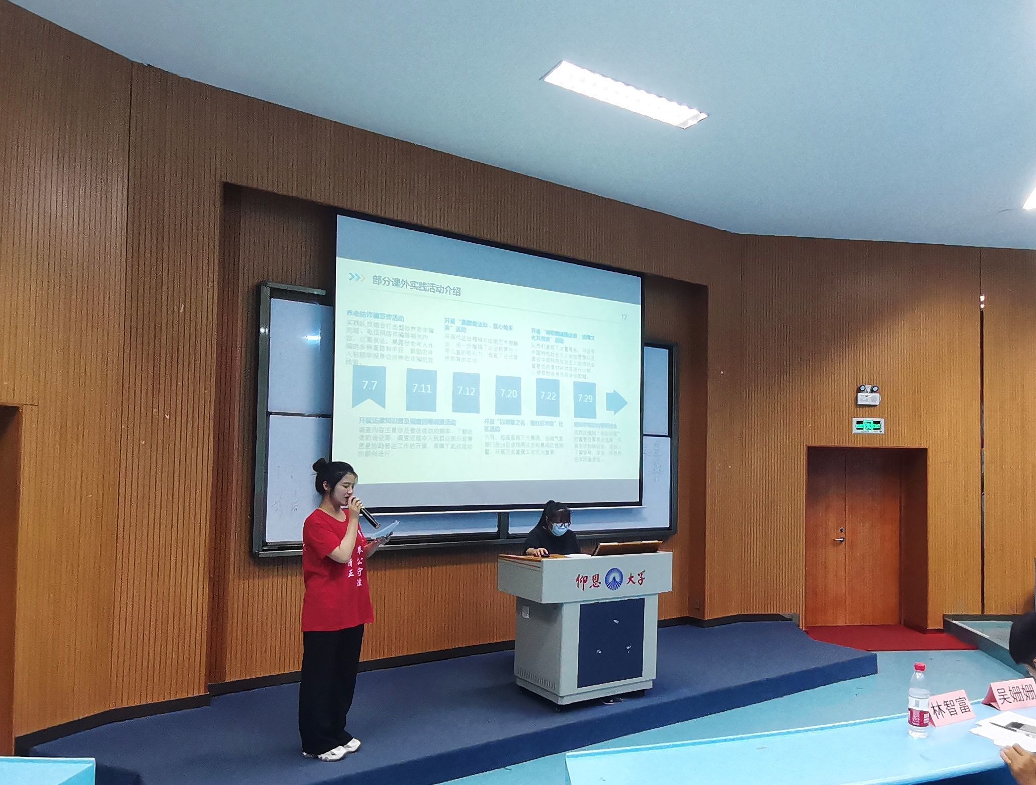 为进一步宣扬二十大精神,加强大学生素质建设。9月23日晚,永利3044集团于304永利集团第三教学区和昌教学楼海纳讲堂开展2021级暑期实践答辩活动。永利3044集团党总支书记兼副院长杨勤、党总支副书记林媛、永利3044集团辅导员吴姗姗,林智富、学务秘书汪明、永利3044集团教师黄文伟到场观看并担任评委。永利3044集团2021级部分学生参加此次活动。 活动现场,各实践队伍展开激烈的角逐,通过以PPT汇报形式结合现场表演、成果展示等方面来充分展现出实践队暑期实践成果。实践队汇报人分别从实践背景及意义、实践过程、实践特色、实践成果、总结思考等方面讲解各自实践活动,展示出精彩实践经历,分享了团队在实践过程中的收获与感悟。在激烈角逐后,“保护河流生态普法队”荣获第一名,“弘民法沧澜”暑期实践队荣获第二名,“刺桐行:勾画党史画卷”暑期实践队荣获第三名。