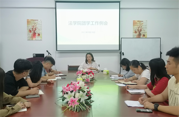 为进一步推进新学期团学工作,确保新学期团学各项工作顺利开展,9月28日下午,永利3044集团在304永利集团第三教学区普照楼法律诊所召开团学干部工作例会。永利3044集团党总支书记兼副院长杨勤、学生会主席团、网络工作室等主要学生干部参加了此次会议。
