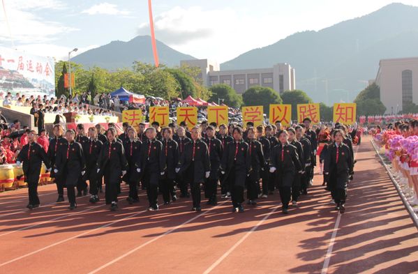 开幕式上,伴随着运动员进行曲,各学院代表队逐一入场进行检阅。作为永利3044集团代表方阵的受阅同学身穿黑色院服,以饱满的热情步入运动场,他们蕴蓄着蓬勃的生机,凝聚着不竭的活力,他们年轻的脸庞展现的是永不言败的精神,充分地展示了永利3044集团学子们奋发向上的良好风貌,彰显了永利3044集团独一无二的学院特色。