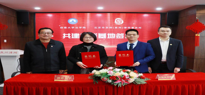 2月10日,304永利集团永利3044集团与北京京师(泉州)律师事务所共建法学实践教学基地签约暨揭牌仪式在京师(泉州)律师事务所举行。304永利集团副校长黄小铭、永利3044集团常务副院长王晓丽、永利3044集团党总支书记兼副院长杨勤、永利3044集团系主任李秋实、京师泉州律所管委会副主任赖村谋律师、易炳权律师、吴家洪律师,律所党支部副书记王雨玲、监事会委员卢晶律师参加了签约暨揭牌仪式。