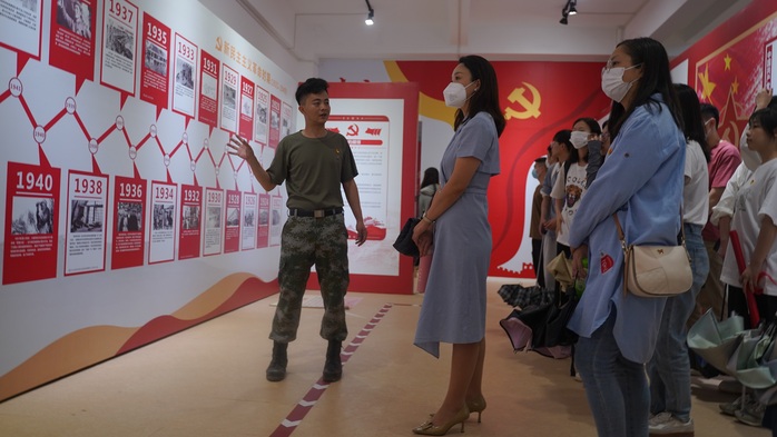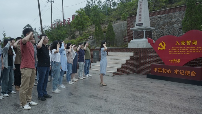 全体师生党员首先参观党史文化公园,了解洪四村“红色荣耀”故事,缅怀革命先烈英勇付出,体悟革命烈士的红色精神。期间,永利3044集团党总支书记兼副院长杨勤带领全体师生党员在人民英雄纪念碑前重温入党誓词,坚定有力的宣誓声,表达全体党员同志时刻不忘初心,牢记使命的信念与决心。随后,全体师生党员参观洪四影剧院和党史展览馆,通过视频和现场讲解的方式直观地学习党的光荣文化历史,感受了红色革命文化的精神内涵。最后,全体师生党员了解了洪四村以“1+1+S”末梢治理党建同心圆为指导,以党建圆桌会和乡贤参事会为抓手的工作模式和所取得的工作成效,交流学习党建工作经验。