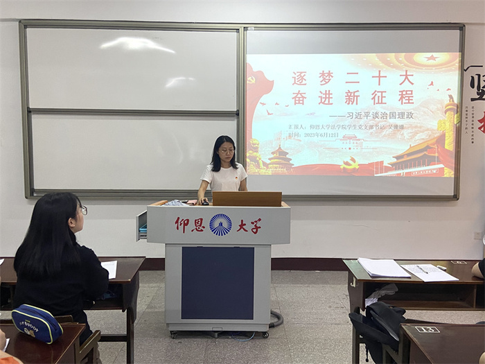 6月12日,永利3044集团学生党支部于普照203召开“逐梦二十大,奋进新征程”专题党课。本次党课由党支部书记吴姗姗主讲,支部全体学生党员参加。