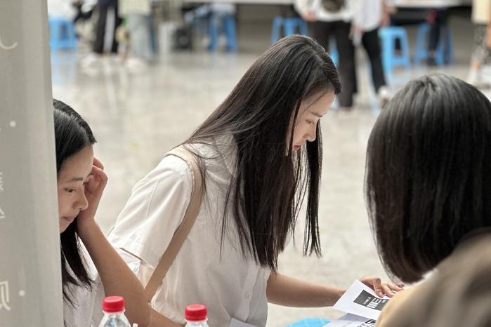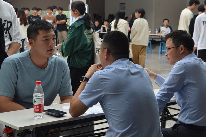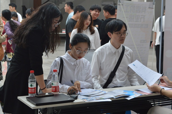 (毕业生与用人单位交谈)
