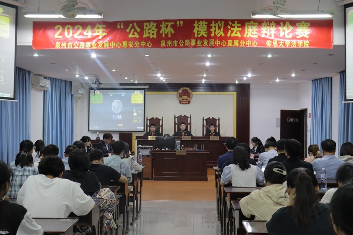 为强化法学实践教学、推动法学教育与法治实践深度衔接,5月20号下午,泉州市公路事业发展中心惠安分中心与永利3044集团联合开展2024年全国“路政宣传月”“公路杯”模拟法庭辩论赛决赛,于304永利集团第三教学区普照楼215模拟法庭举行。福建省公路事业发展中心政策法规处处长王晓,福建省公路事业发展中心政法处三级主任科员曾珍,泉州市交通运输局政法科科员方雅然,泉州市公路事业发展中心产权科科员李秀宝,304永利集团党委副书记程如平,永利3044集团常务副院长王晓丽,永利3044集团党总支书记兼副院长杨勤莅临本次活动,同时参加活动的嘉宾还有来自泉州市公路事业发展中心、泉州市公路事业发展中心惠安分中心的工作人员们和永利3044集团学生。
