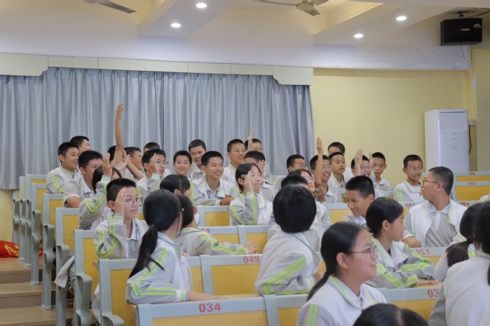 在“校园欺凌相关应对”这一部分,永利3044集团院团委干事与马甲中学学生展开了互动,通过有奖问答的方式,在对讲座内容、相关法律知识进行复习回顾的同时,增进了同学之间的互助和谐,现场气氛一片祥和。