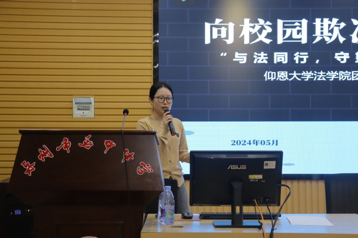 活动过程中,永利3044集团讲师陈喆敏以“校园欺凌是什么?”、“校园欺凌带来怎样的危害?”、“校园欺凌应该怎样合理预防?”、“对于校园欺凌应该如何与应对?”四个问题开篇,点明了本次讲座普法宣传的四个主题板块,向现场的中学生系统的介绍了校园欺凌,并进一步让中学生清楚地认识到校园欺凌的表现形式和危害,从而增强自我防范意识,避免成为受害者。同时强调了,校园欺凌可分为直接欺凌和间接欺凌两种分类模式,以及相 关对应刑法法律规定,鼓励学生在面对校园欺凌时,敢于挺身而出,维护正义,不做冷漠的旁观者。