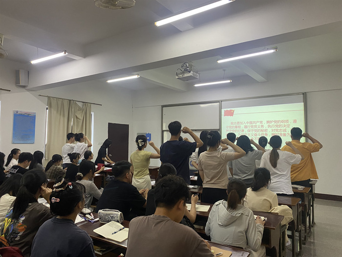会议最后一项,支部书记吴姗姗作总结发言。她向十三位同志表示了祝贺,同时希望他们在今后的工作学习中,不断完善自己,按党员标准严格要求自己,不辜负党组织的培养,用自己的行动践行践诺。要求所有的党员同志都要不断学习,与时俱进,争做一名优秀的共产党员。