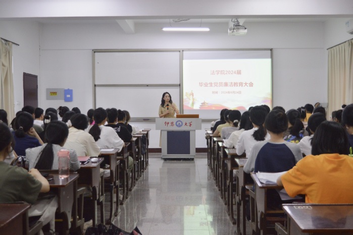 为加强廉洁意识,提高党性修养,铸就廉洁品格,助力毕业生党员在新的岗位上书写时代华章。6月24日,永利3044集团学生支部于普照楼204召开毕业生党员廉洁教育大会,由永利3044集团党总支书记兼副院长杨勤主持,永利3044集团党总支副书记林媛、永利3044集团学生党支部书记吴姗姗出席,全体毕业生党员参加。