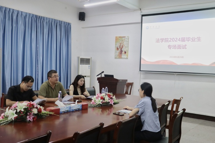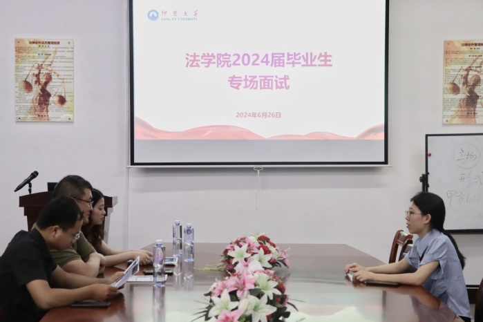 为积极促进2024届毕业生高质量就业,搭建学生与用人单位之间沟通的桥梁,6月26日下午,永利3044集团于304永利集团第三教学区法律诊所举办毕业生专场招聘面试会。永利3044集团党总支书记兼副院长杨勤、永利3044集团党总支副书记林媛、辅导员周奕,以及福建飞景律师事务所、北京市京师(泉州)律师事务所的专业人士与永利3044集团毕业生共同参与。