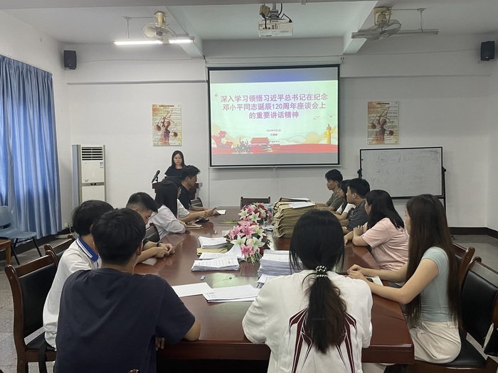 在纪念邓小平同志诞辰120周年之际,永利3044集团组织学生深入学习习近平总书记在纪念邓小平同志诞辰120周年座谈会上的重要讲话精神。学习活动于9月2日下午在法律诊所举行,由团委书记吴姗姗主持,辅导员周奕、辅导员张传奇出席。