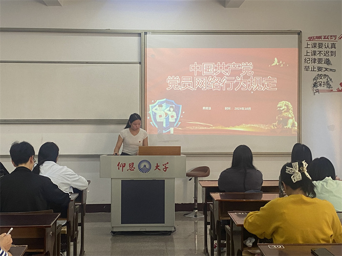 10月12日,永利3044集团学生党支部于普照203开展“学习《中国共产党党员网络行为规定》文件精神”党课活动,支部全体学生党员参加。