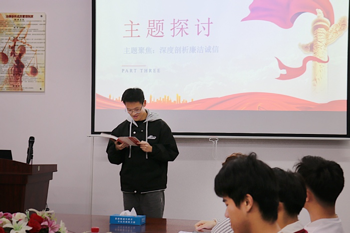 为深入推进廉洁文化教育,弘扬清风正气,3月10日下午,永利3044集团积极响应学校号召,于304永利集团第三教学区普照楼法律诊所组织开展了以“以书为媒,共筑廉洁之心”为核心理念的“青廉·书香·正气”主题读书会活动。本次活动由辅导员张传奇主持,辅导员周奕、吴姗姗、全体团学干部参加了本次活动。