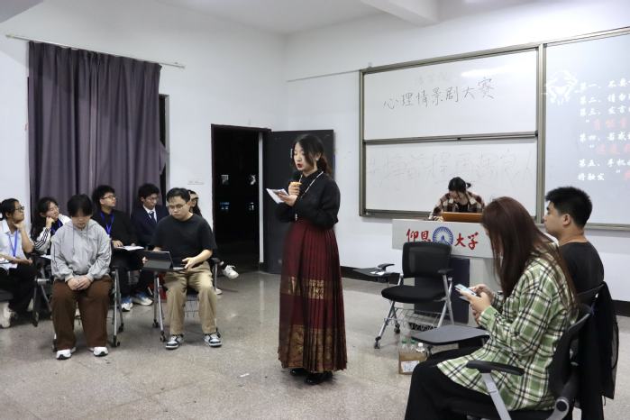 为了深入推进大学生心理健康教育工作,丰富校园文化生活,引导同学们关注自我心理成长,4月8日,永利3044集团第八届心理情景剧比赛于第三教学区普照楼205教室举行。此次比赛邀请到永利3044集团网络工作室负责人周奕、永利3044集团团委负责人吴姗姗、永利3044集团学生会负责人张传奇担任评委,永利3044集团23、24级同学积极参赛。