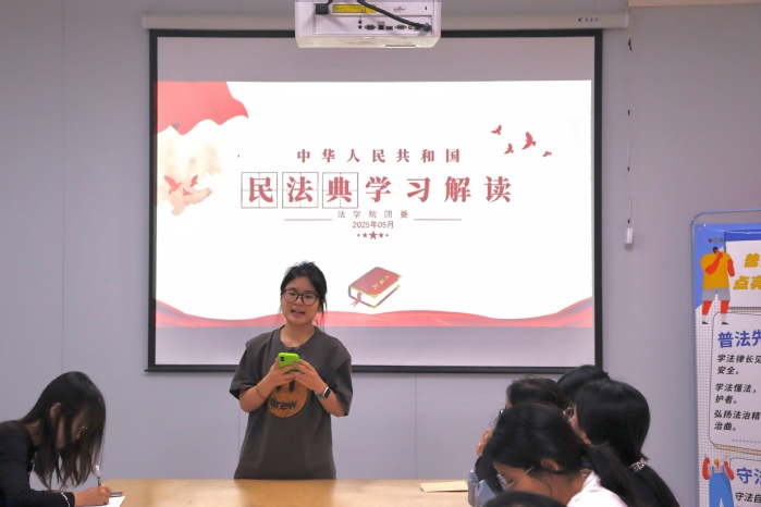 活动过程中,吴奕雯围绕《民法典》内容,仔细讲解了关于民事行为能力、婚姻、合同、养老等方面的法律知识,并通过具体例子帮助同学们了解法律,理解法律,教会面对难题时主动寻求法律帮助,处理问题时借助法律手段。活动现场,同学们积极参与讨论,并对于活动过程中不理解的问题进行积极的发问,吴奕雯耐心解答了每一个问题,极大地丰富了同学们对法律的认识,同时提高了他们的法律意识。