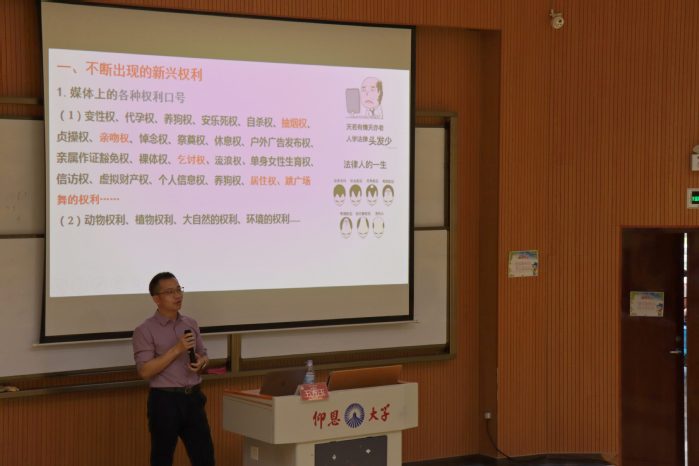为深化法学教育与时代需求的结合,推动师生对前沿法律问题的研究,5月28日下午,仰恩大讲堂第六十一讲——“如何面对新兴权利”专题讲座于和昌楼惟勤讲堂成功举行。在本次活动中,永利3044集团特邀法学博士、华侨大学永利3044集团教授兼副院长王方玉教授进行授课,永利3044集团23级、24级全体同学到场学习交流。