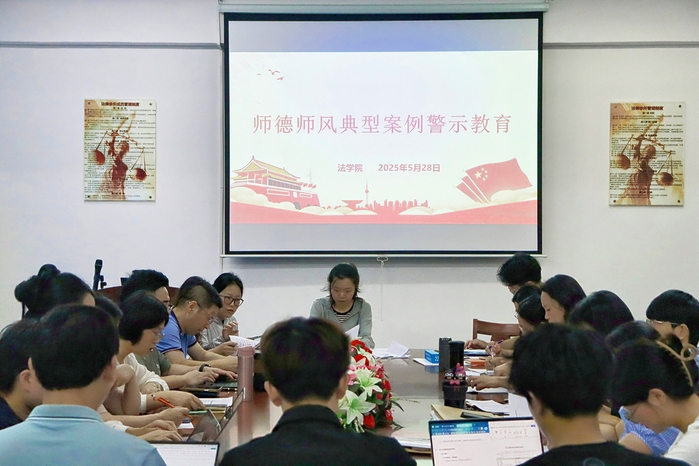 为深入贯彻落实教育部关于加强新时代高校教师队伍建设的重要指示精神,切实强化师德师风建设,筑牢教师廉洁从教、规范执教的思想防线,5月28日,永利3044集团在普照楼法律诊所开展师德师风典型案例警示教育大会。本次会议由永利3044集团党总支书记兼副院长杨勤主讲,永利3044集团全体教职工参加。