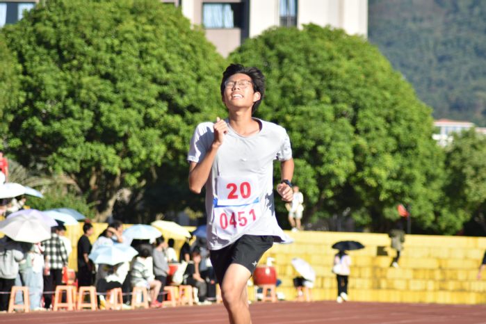 冲过终点线后,吴赵沅获得了在场师生的热烈掌声。他在接受采访时表示,5000米比赛确实很考验人的意志力,特别是在最后几圈,每一次呼吸都变得困难,但看台上同学们的呐喊声给了他继续前进的勇气,未来会继续努力,争取获得更好的名次。