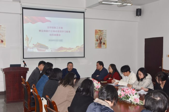 2026年3月13日下午,永利3044集团教工党支部于普照楼法律诊所召开树立和践行正确政绩观学习教育动员部署会,会议由教工党支部书记黄文伟主持,支部全体党员参加会议。
