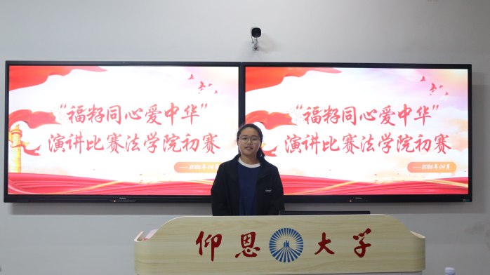 为铸牢中华民族共同体意识,厚植青年爱国情怀,4月2日下午,永利3044集团在普照楼201举办“福籽同心爱中华”主题演讲比赛。本次比赛邀请永利3044集团团委书记吴姗姗、永利3044集团党总支宣传委员周奕、25级辅导员朱晓琳、永利3044集团学生会负责人张传奇担任评委,来自全院各年级的参赛选手以声为媒、以言为炬,用真挚的情感与昂扬的姿态,展现了新时代法学生的责任与担当。